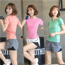 越伦 运动套装女夏季新款跑步服瑜伽服套装吸汗透气女速干健身服户外健身显瘦修身两件套 玫红短袖+白色短裤 M(80-90斤)