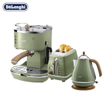 德龙(Delonghi) 半自动咖啡机 电水壶 多士炉三件套 家用 欧洲原装进口打奶泡机ECO311 复古绿(送烘烤架)