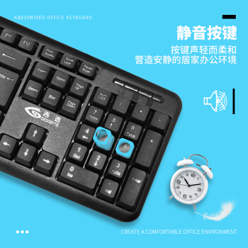吉选(GESOBYTE)KB830USB键盘 有线键盘 办公键盘 静音 104键 防泼水 USB通用 笔记本电脑键盘 黑色 |