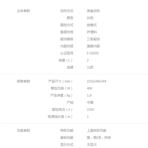 F-20Z05电饭煲【硅晶内胆/白】 |