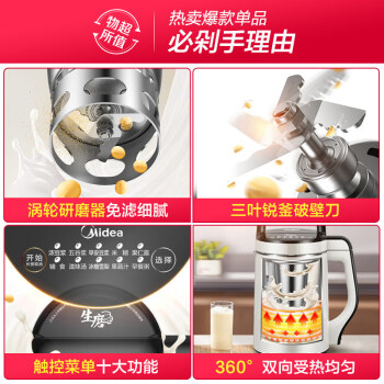 美的(Midea)豆浆机高转速破壁免滤豆浆机双层防烫可做米糊果汁搅拌机DJ12B-Easy201(李现推荐) |