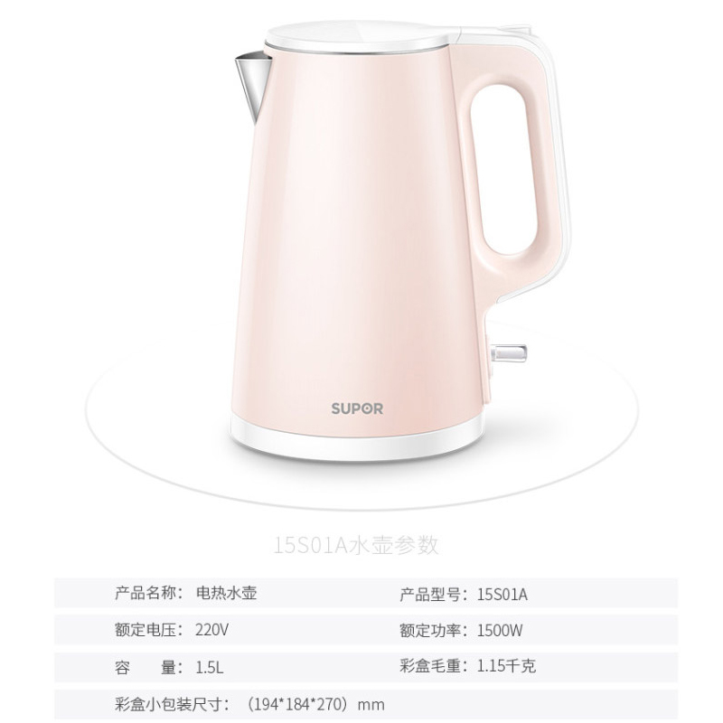 SW-15S01A电热水壶1.5L【304不锈钢/粉色】 |