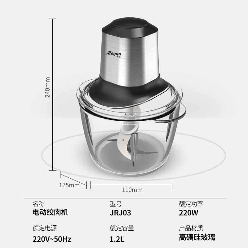 电动果蔬绞肉机【高硼硅玻璃/银色】 |