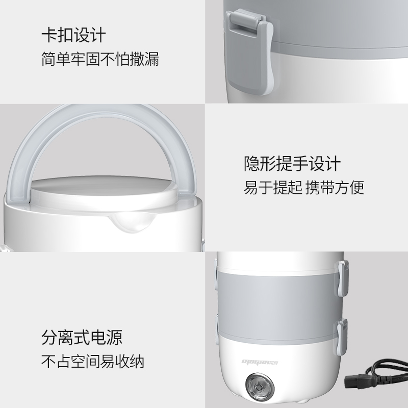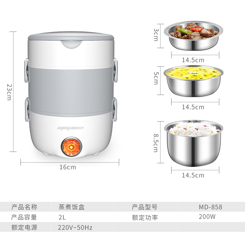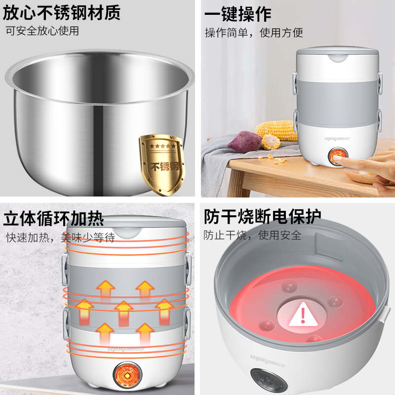 大容量三层防干烧自动断电电热饭盒【食品级不锈钢/白色】 |