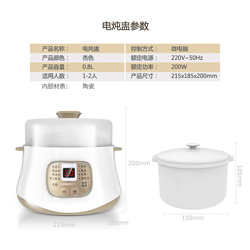 蒙得智能多功能带显示屏电炖盅隔水炖【陶瓷/白色】 |