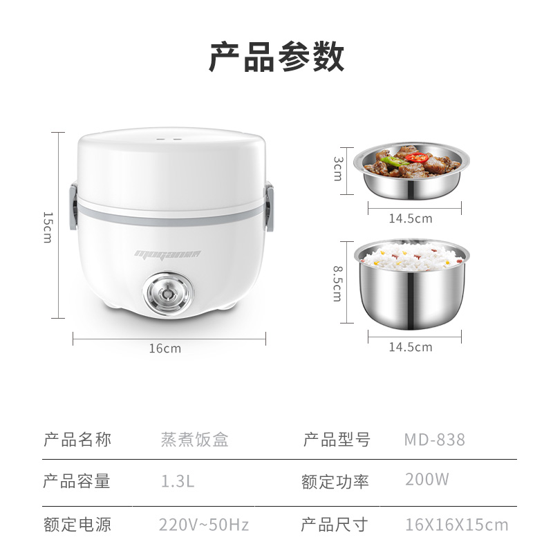 立体循环加热蒸煮饭盒【食品级不锈钢/白色】 |