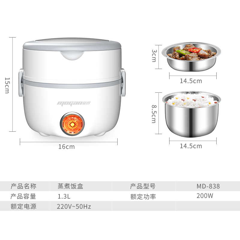 防干烧自动断电双层饭盒【食品级不锈钢/白色】 |
