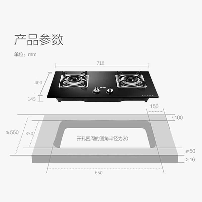 Haier/海尔 JZT-QE5B2(12T) 燃气双灶 天然气灶具台嵌两用熄火保护钢化玻璃灶面板【防爆玻璃/黑色】 |