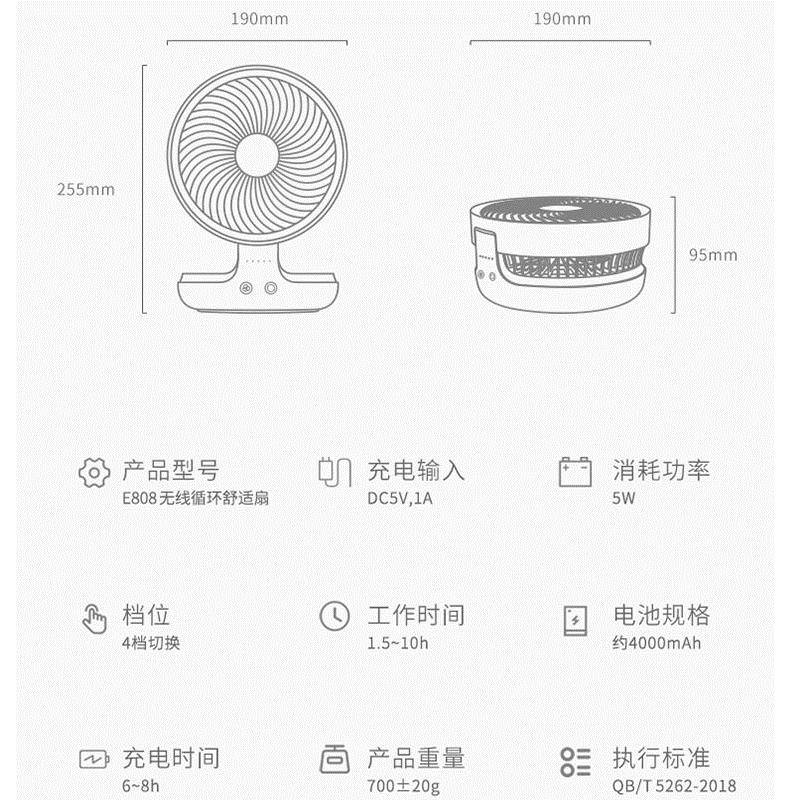爱登(edon)风扇e808悬浮空气循环扇无线桌面家用小风扇 【充电款】悬浮摇头+4档风力+夜间呼吸灯【ABS材质/星空灰】 |