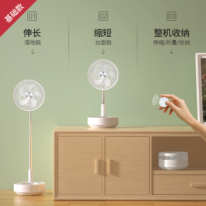 edon爱登 风扇E908悬浮收纳落地扇静音遥控台式充电空气循环扇伸缩折叠【基础款】可摇头+定时+遥控【ABS材质/白色】 |
