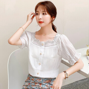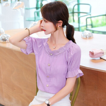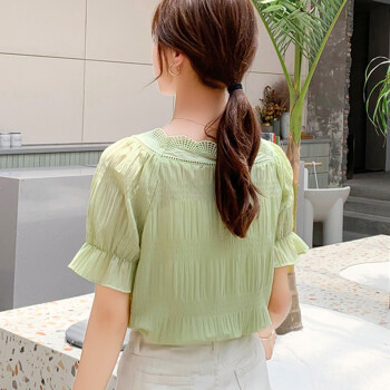 昱樱衬衫女时尚雪纺衫女2020年夏装新款小个子学生泡泡袖韩版潮流短袖t恤短衣服小衫上衣欧洲站衬衣女 浅绿色 此码勿拍.请拍自身对应码数 |