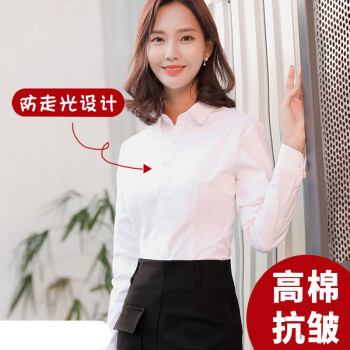 长袖衬衫女修身2020新款女士职业装商务正装白色V领大码工装衬衣酒店4S店工作服上衣 廷毅 方领(暗扣)白平纹 37 |