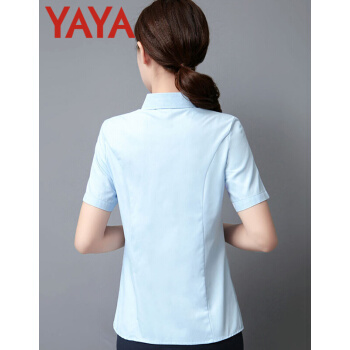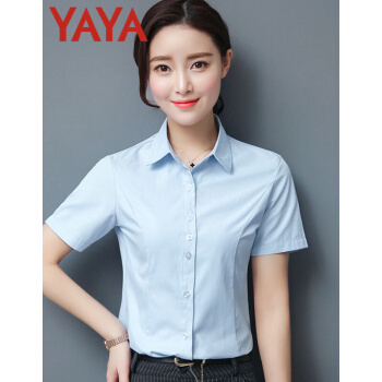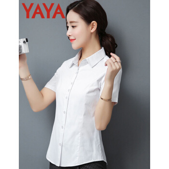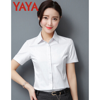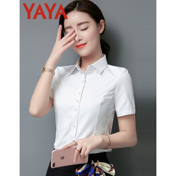 鸭鸭服饰(yaya)衬衫女2020夏季新款女装短袖职业装女士上衣韩范百搭修身纯色衬衣 白色 请选择正确尺码 |