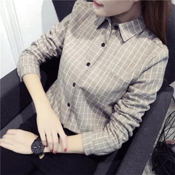 得听衬衫女2020新款纯棉格子衬衫女长袖宽松2020秋季韩版百搭学生休闲磨毛打底衬衣 杏色 M(100-110斤) |
