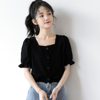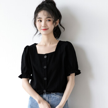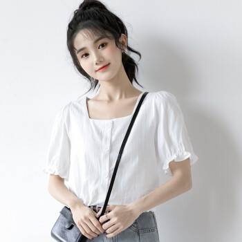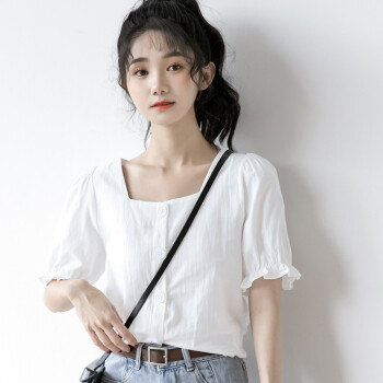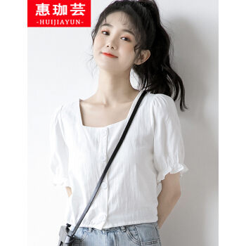 惠珈芸短袖衬衫女2020夏季新款很仙的法式泡泡袖上衣女小众设计感白色衬衫韩版法式复古方领t恤衬衣女潮 白色 此码勿拍.请拍自身对应码数 |