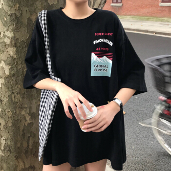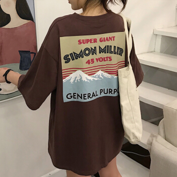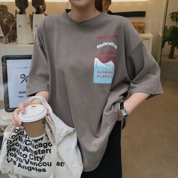 娇诗茹欧货网红ins短袖t恤女2020韩版宽松bf洋气打底衫早春半袖蹦迪上衣 深灰色 M |