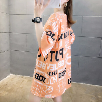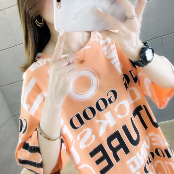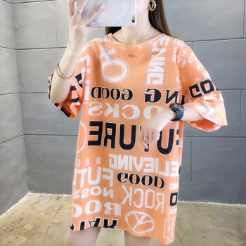 凝拉t恤女短袖纯棉2020新款夏装中长款韩版宽松大码欧货潮上衣服半袖体恤 桔色 2XL(建议150-170斤) |