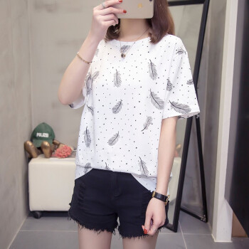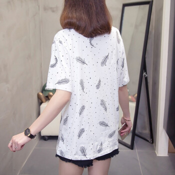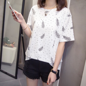 莺飞雪短袖t恤女2020夏季新款韩版宽松休闲学生大码女装显瘦百搭上衣打底衫女 白色6213 L(建议90-115斤) |