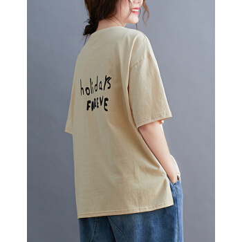 婪澈T恤女2020女装夏季新款文艺棉圆领印花短袖t恤女宽松大码休闲上衣女 深灰色 请拍正确尺码 |