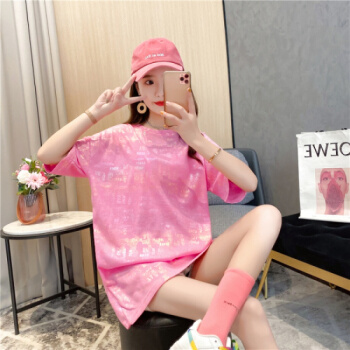 苹纳莎 短袖T恤女韩版宽松2020夏季新款时尚个性中长款亮闪闪上衣大码女装打底衣服潮 桔色 L |