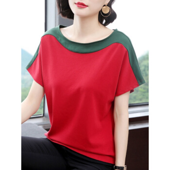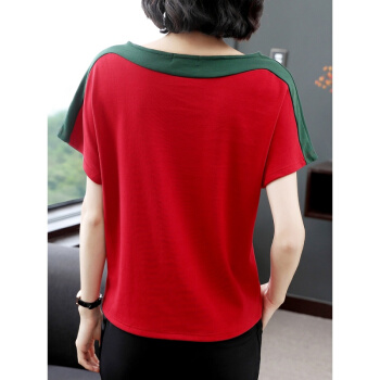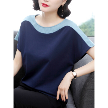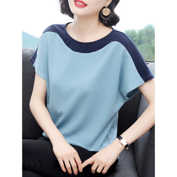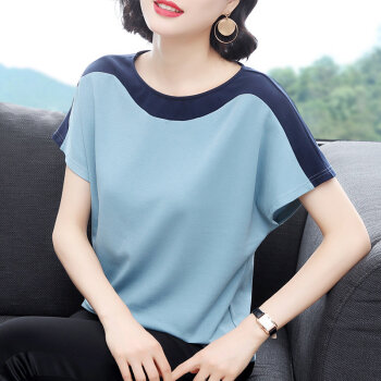 红粉宣言2020夏季新款百搭宽松短袖T恤女大码撞色上衣 浅蓝 3XL |