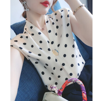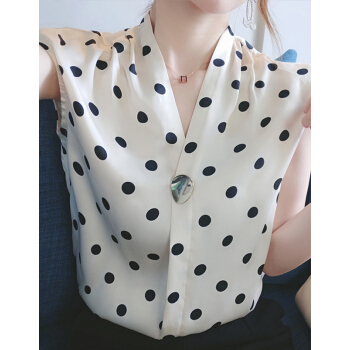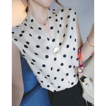 南极人 雪纺短袖t恤女士夏装2020新品法式波点v领小心机简约遮肚减龄休闲ins百搭上衣体恤 N2-NRB41-7871-波点上衣 M |