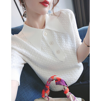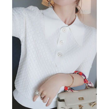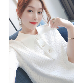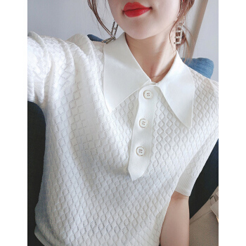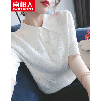 南极人 短袖t恤女2020夏季新款潮流时尚洋气百搭小香风菱格镂空花纹POLO衫上衣潮 N2-GT131-6660-白色 M |