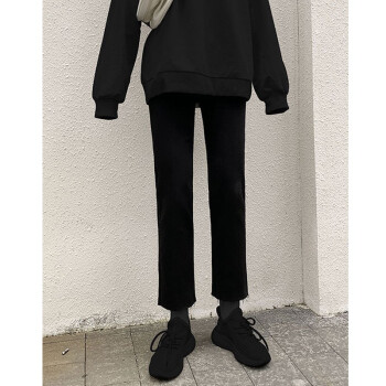 【精选好货】Hizze直筒牛仔裤女2020年新款夏季薄款时尚高腰显瘦黑色女裤学生宽松百搭九分库 经典黑-直筒毛边 请拍正确尺码 |
