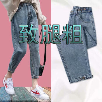 洋梦星童牛仔裤女小脚九分裤2020夏季新款韩版高腰显瘦女裤哈伦裤潮 5995浅蓝色【束脚】 M100斤左右 |