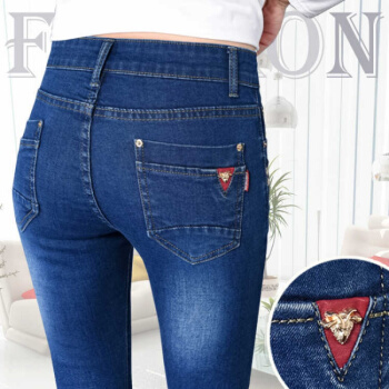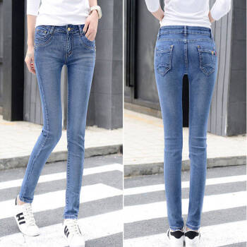 南星点点高腰牛仔裤女裤2020秋季新款韩版显瘦小脚长裤裤子 深蓝 27 |