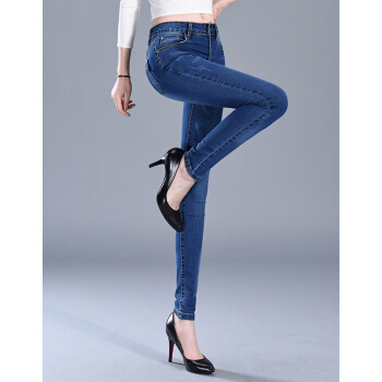 【精选女裤】Hizze牛仔裤女2020春夏季新款修身弹力显瘦韩版时尚小脚紧身高腰百搭铅笔裤休闲长裤 深蓝 请拍正确尺码 |