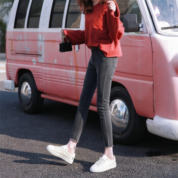 灰色牛仔裤女2020年夏季新款高腰弹力修身显瘦学生紧身百搭休闲秋装女士九分小脚铅笔裤子 灰色九分 27码 |