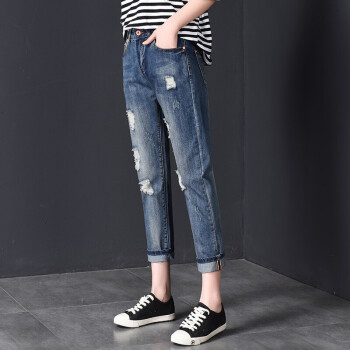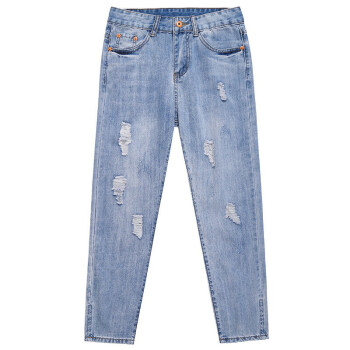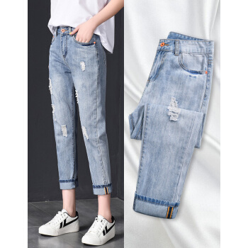 【2件特价】右昀 破洞牛仔裤女装九分裤宽松潮烂夏季薄款2020新款高腰显瘦春秋老爹乞丐裤子 浅蓝(正常腰) 28【适合106-110斤】 |