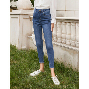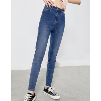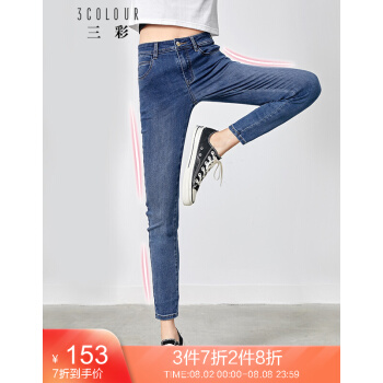 三彩2020秋季新款高腰弹力3D瘦身显瘦修身小脚裤水洗牛仔长裤女 蓝色 155/64A/S |
