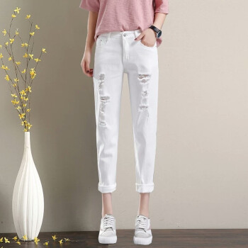 【2件特价】右昀 高腰破洞牛仔裤女宽松春秋2020新款显瘦百搭学生九分哈伦萝卜裤子 浅蓝色 28【适合100-110斤】 |