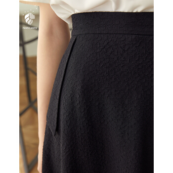 范思蓝恩 2020夏季新款肌理感高腰半身裙女百搭短裙雪纺a字裙子女 黑色 L |