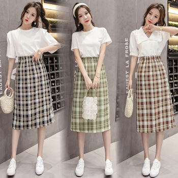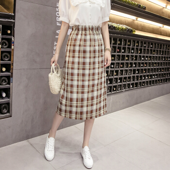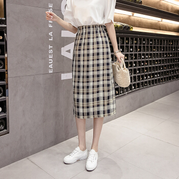 阅樱半身裙女中长款 2020新款女装韩版格子高腰下半身裙子学生裙包臀裙一步裙显瘦百搭夏 绿色 均码 |