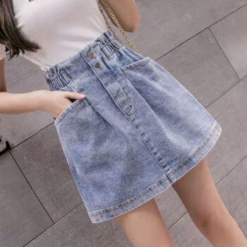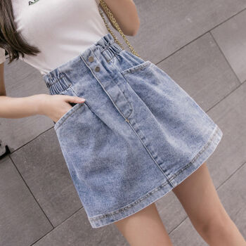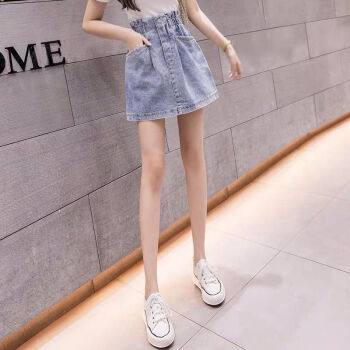 YUDA牛仔裙半身裙2020春夏新款女高腰显瘦松紧小清新大码百搭包臀裙显瘦短裙子 主图浅蓝 M 95-110斤 |