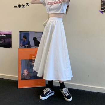 三生笑 白色半身裙女长裙夏季2020新款韩版高腰a字裙显瘦学生中长款裙子 白色 均码 |