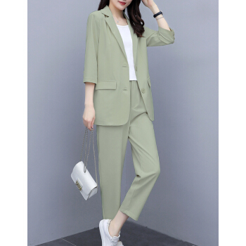 婪澈休闲裤女2020年女装夏新款西装套装女韩版显瘦职业西服女时尚气质洋气职业两件套套装女 粉色 请拍正确尺码 |