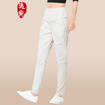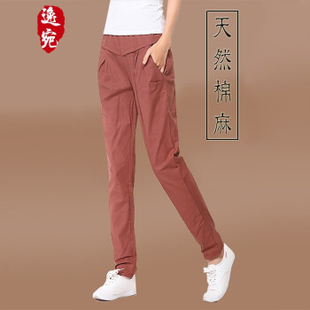 逸宛yw休闲裤女2020夏季新款棉麻裤紫显瘦百搭小脚长裤薄款大码女装宽松紧高腰休闲亚麻哈伦裤 浅棕色 M【建议100-110斤】 |