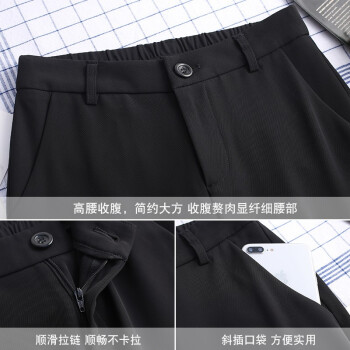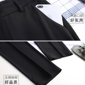 俪缨休闲裤女西装裤宽松直筒2020春秋新款高腰ins坠感工装裤九分显瘦黑色百搭萝卜烟管女裤子大码女装 黑色九分 L(建议105-115斤) |