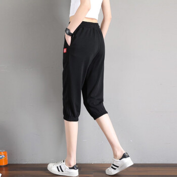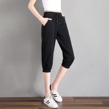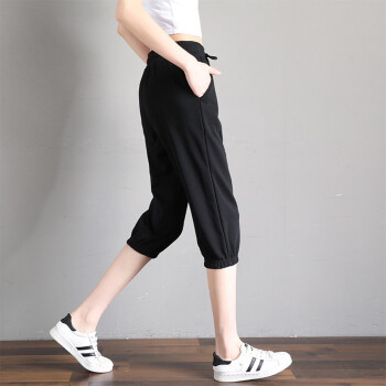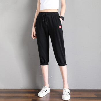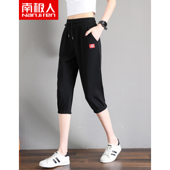 南极人 七分裤子女2020夏季新款薄款运动短裤宽松百搭棉中裤休闲裤束脚韩版减龄女裤 JY304 黑色 请拍正确尺码 |