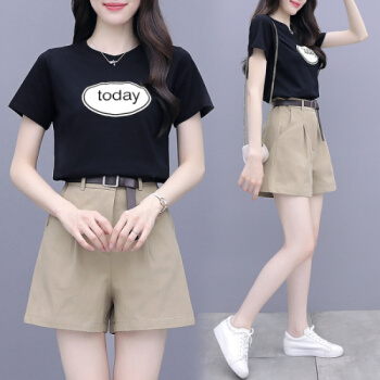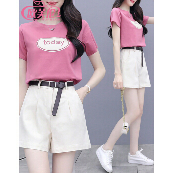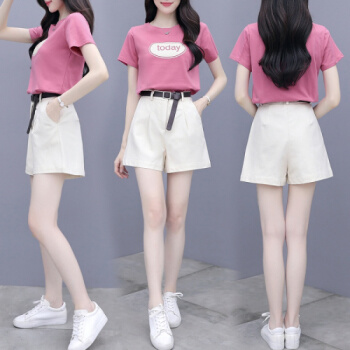 欧芙伦短裤女套装2020夏季新款女装短袖t恤休闲时尚洋气减龄小个子显高两件套9697 粉色套装 M |