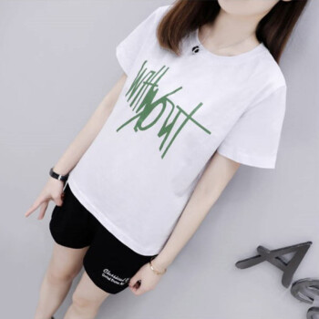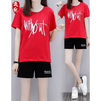 逸宛yw短裤女运动休闲套装女2020年夏装新款大码运动服时尚印花短袖短裤两件套跑步服女学生宽松套装 黑色 M【建议85-105斤】 |