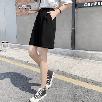 南极人 西装短裤女夏宽松2020新款休闲显瘦黑色直筒雪纺高腰阔腿裤五分减龄中裤 YYR892 黑色-真门襟 请拍正确尺码 |