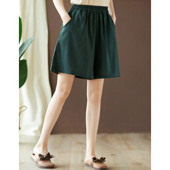 龙芝美 短裤女2020夏季新款复古亚麻宽松大码百搭显瘦刺绣棉麻阔腿五分裤女 XJM2FB078-6866-卡其色 XL |