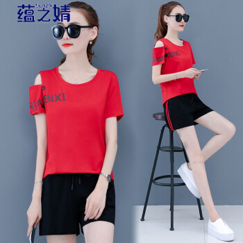蕴之婧 2020新款运动休闲套装女大码女装夏韩版宽松ins潮显瘦小个子棉两件套短袖T恤短裤女 宝蓝 L(建议90-105斤左右) |