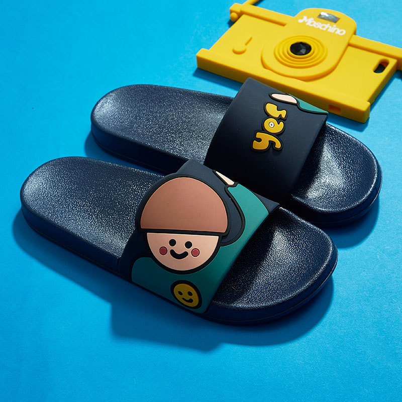 时尚卡通可爱趣味招手蘑菇头厚底舒适情侣凉拖鞋【pvc/深蓝】 |