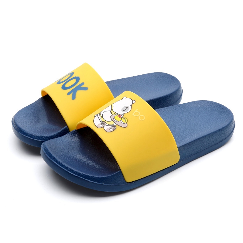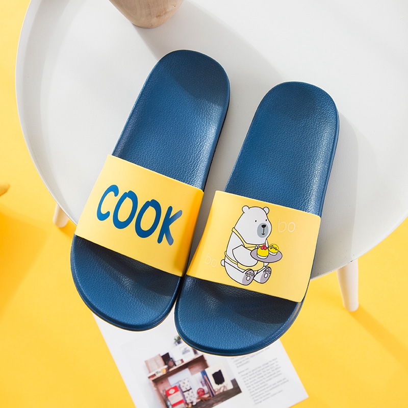 可爱卡通趣味送餐熊撞色亲子款凉拖鞋【橡塑/海蓝/黄色】 |